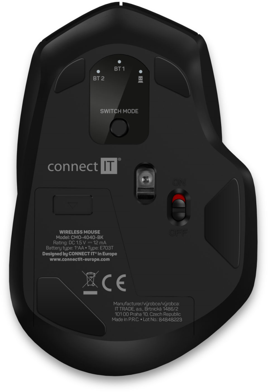 Connect IT Triple SmartSwitch bezdrátová myš, 2.4 GHz & BT - černá