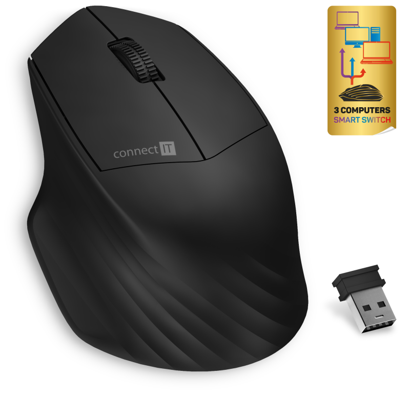 Connect IT Triple SmartSwitch bezdrátová myš, 2.4 GHz & BT – černá