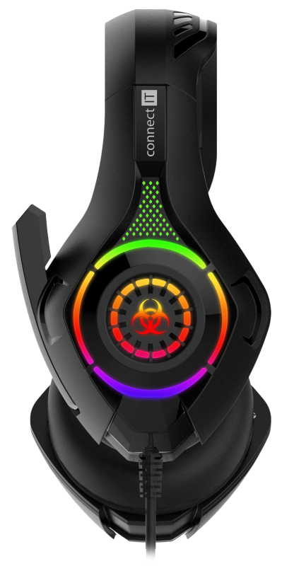 Connect IT Biohazard RGB herní sluchátka s mikrofonem, 1×Jack + USB – černá