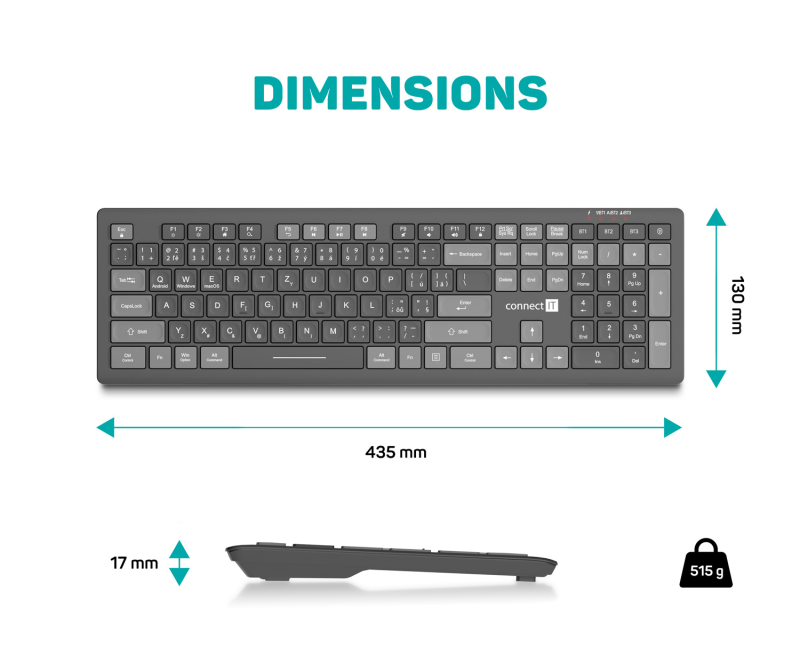 Connect IT MultiDevice bezdrátová klávesnice, CZ/SK – šedá