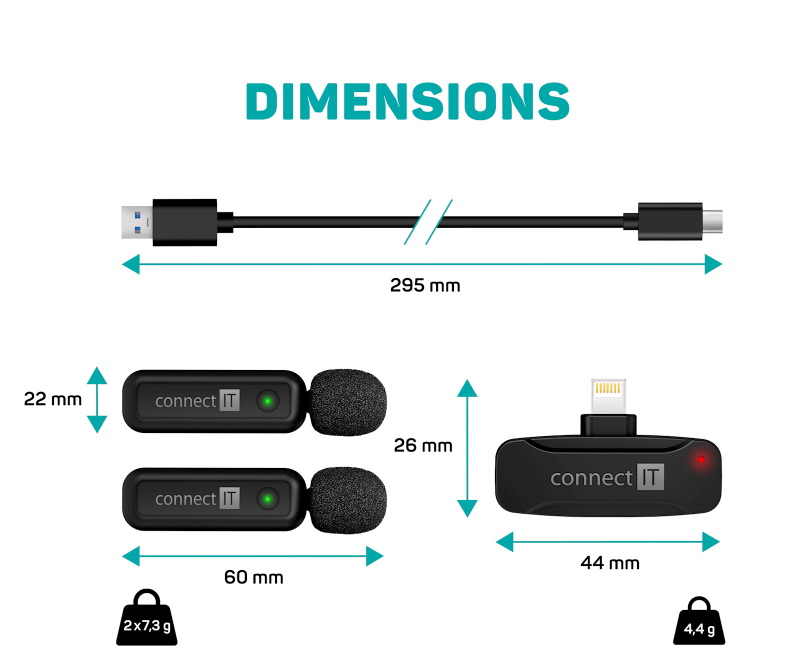 Dvojice bezdrátových mikrofonů s Lightning přijímačem, výdrží až 4 h a dosahem 20 m. Ideální pro iPhone/iPad tvůrce, podcasty a videa. Kompaktní provedení, snadné použití a průchozí nabíjení telefonu přes přijímač.