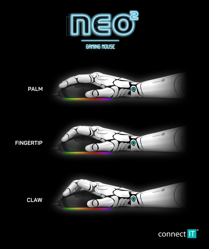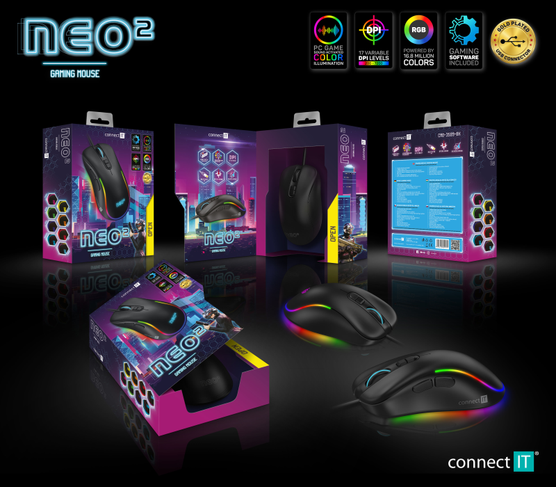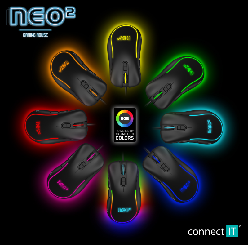 Connect IT NEO 2 herní myš+SW, 7200 DPI - černá