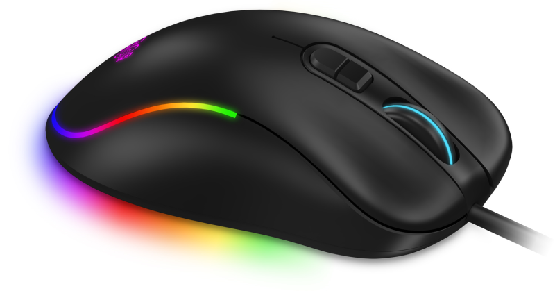 Profesionální herní myš CMO-3589-BK s 13 RGB režimy, až 7200 DPI, 7 programovatelnými tlačítky a ergonomickým designem pro všechny typy úchopu. Součástí je prémiový opletený kabel, pozlacený USB konektor a software pro vlastní nastavení funkcí.
