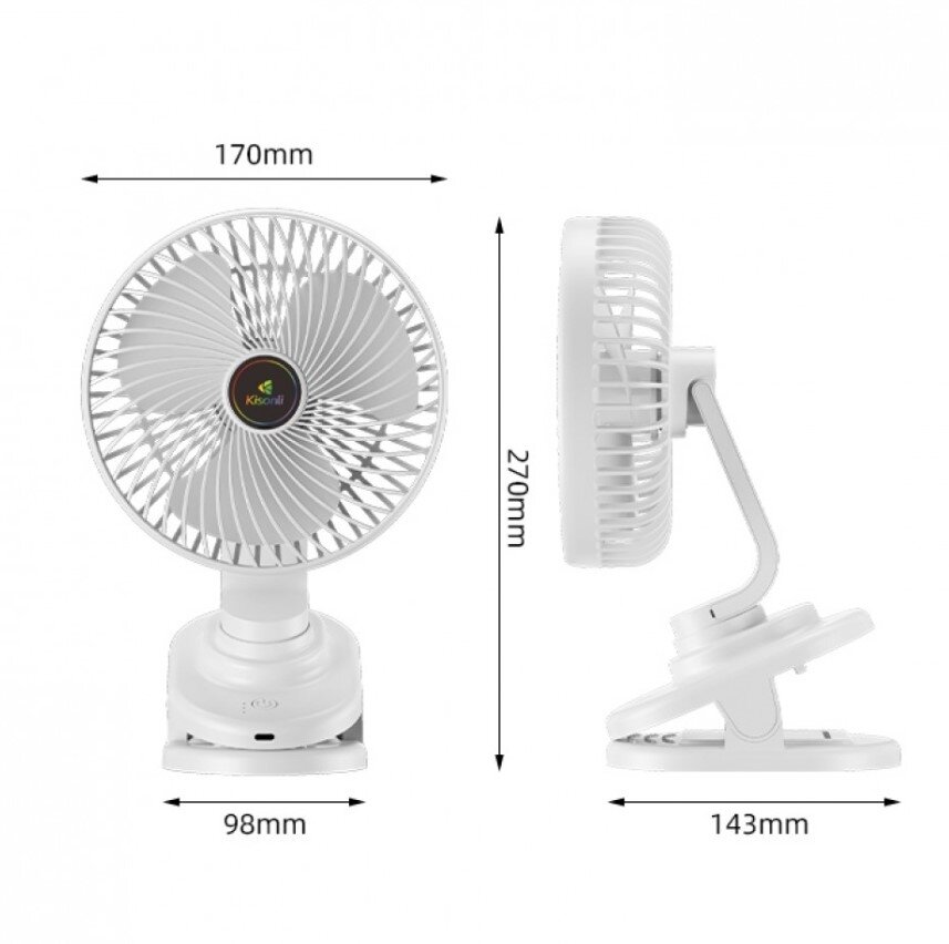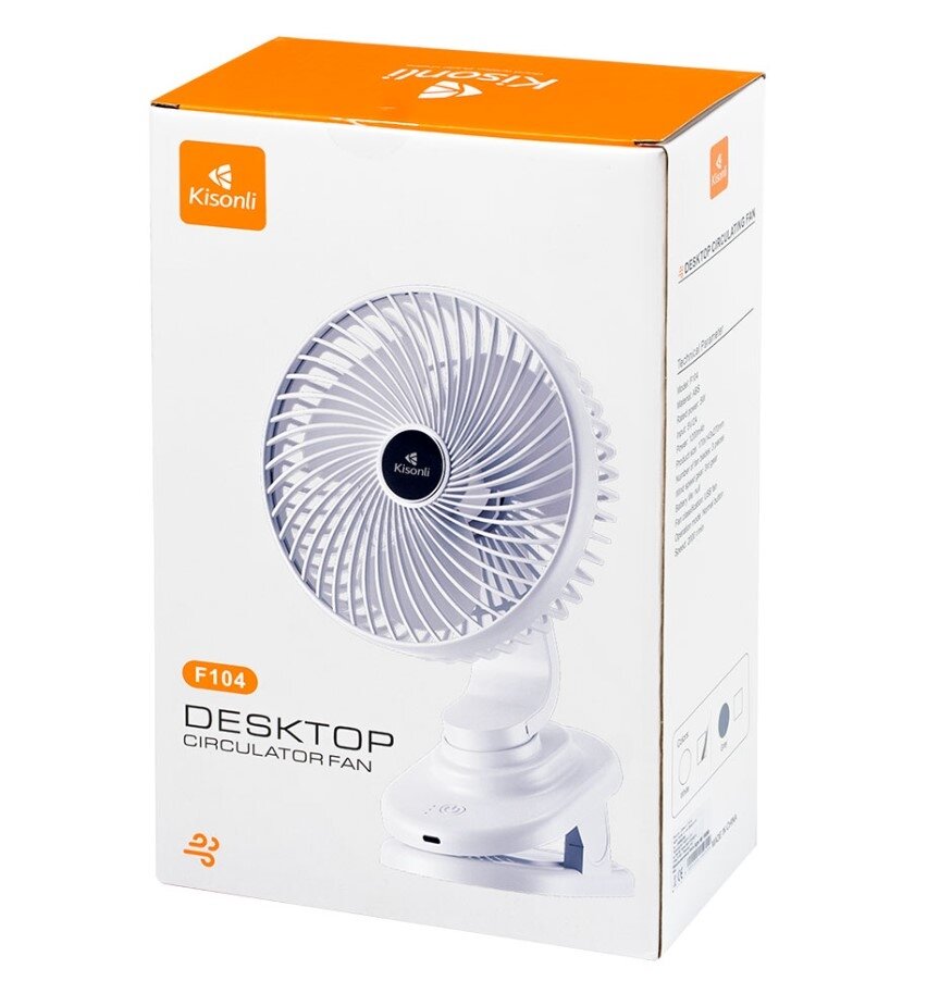 Ventilátor Kisonli F104 kombinuje moderní design s funkční konstrukcí, díky které si užijete příjemné osvěžení bez hluku a s dlouhou výdrží. Oceníte jej doma, v práci i na cestách.
