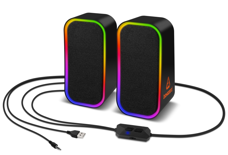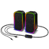 Stylové herní reproduktory Connect IT Biohazard (CSP-1200-BK) s RGB podsvícením nabídnou jak AUX, tak i Bluetooth připojení. Ovládání hlasitosti a světelných režimů pohodlně na kabelu – ideální doplněk každé herní sestavy.