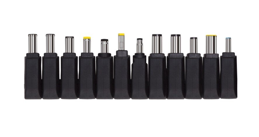 Univerzální napájecí adaptér 90 W s 12 koncovkami pro širokou škálu notebooků. Kompaktní, bezpečný a ideální na cesty.