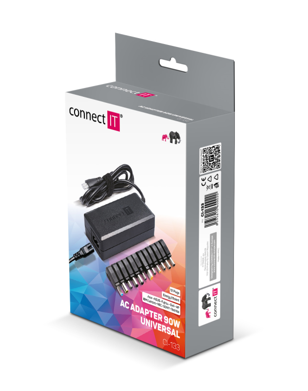Univerzální řešení pro napájení notebooků různých značek. Kompaktní napájecí adaptér CONNECT IT o výkonu 90 W je vybaven 12 výměnnými konektory, které pokrývají nejběžnější typy napájecích portů. Díky ochranám proti přepětí, nadproudu a zkratu je zajištěna bezpečnost vašeho zařízení při každém použití.