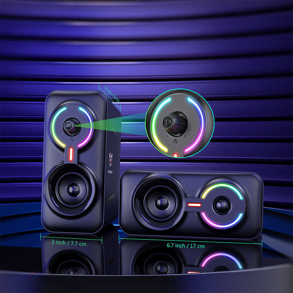 Reproduktory Onikuma jsou vybaveny RGB podsvícením. Je k dispozici v až 6 různých režimech, díky kterým si je zcela přizpůsobíte svým preferencím a navíc dokonale podtrhne herní charakter vašeho zařízení. Správa barevných režimů provádí pomocí tlačítka na reproduktoru. Vyjádřete svou náladu pomocí správného režimu!